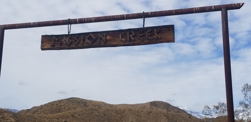 This was my first trip to the Mission Creek Preserve, which is adjacent to the Whitewater Canyon Preserve. Parking is about 1.5 miles up a good dirt road, Mission Creek Rd. When I arrived, I saw two hikers who had just returned to their vehicle. For most of the hike, I was completely alone. Passing the gate, the first mile of the hike runs mostly parallel to Mission Creek along Mission Creek Road.